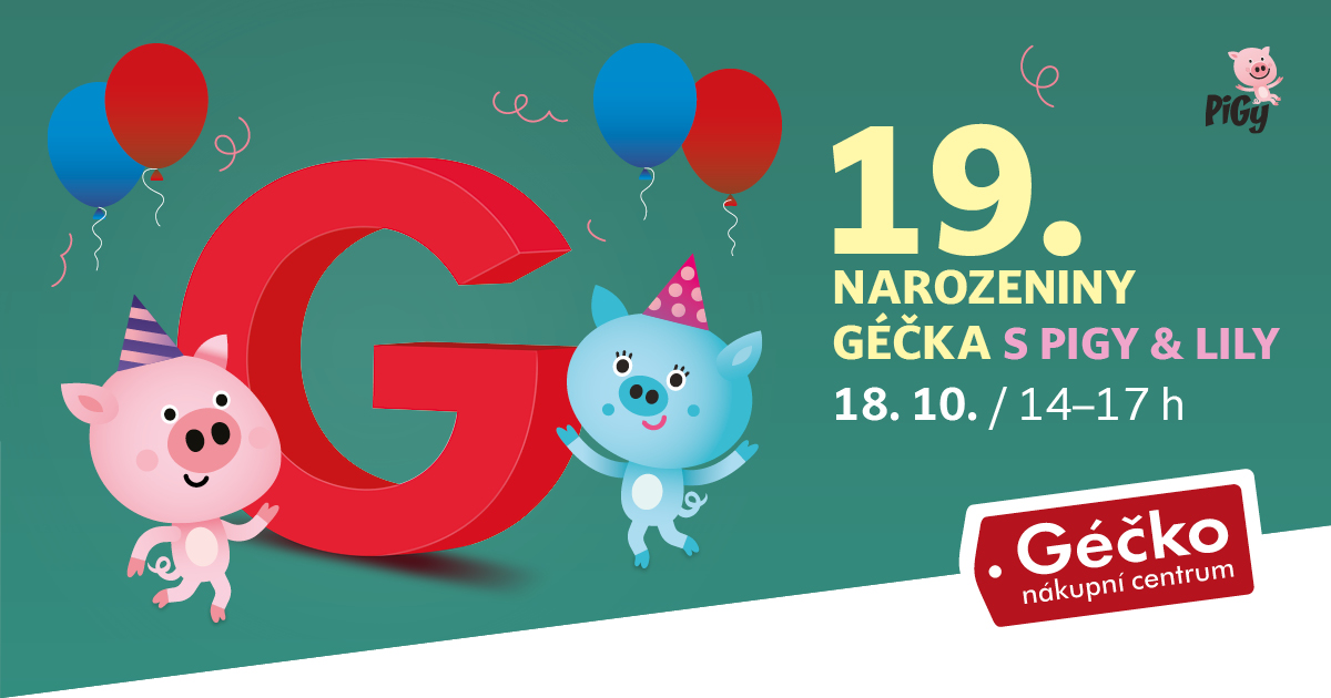 Přijďte společně s prasátky Pigy & Lily oslavit narozeniny nákupního centra Géčko v Českých Budějovicích.